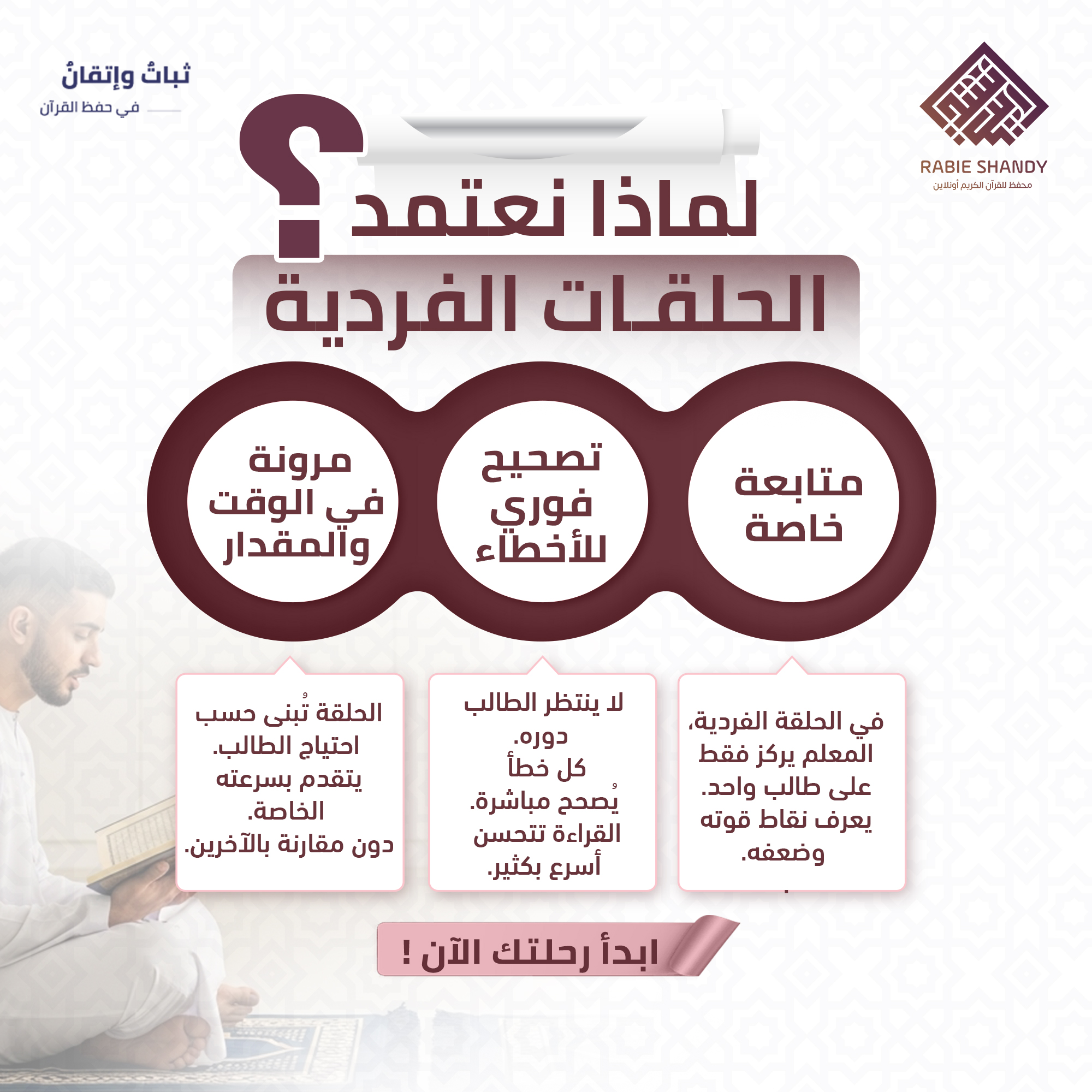 جلسات فردية مخصصة لتحسين التلاوة، وضبط مخارج الحروف وتطبيق أحكام التجويد بشكل صحيح